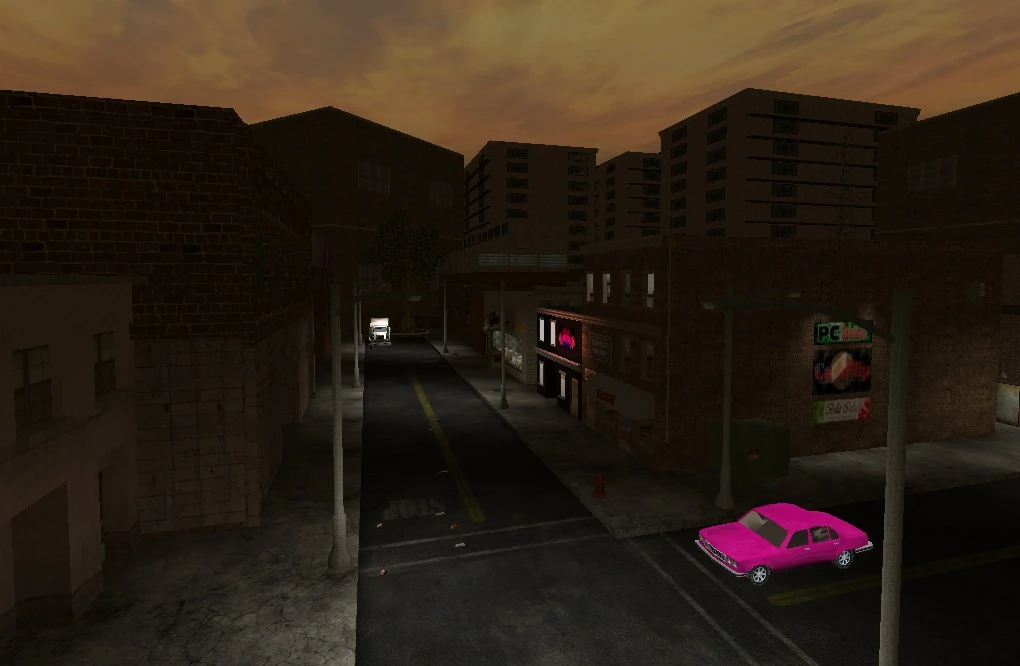 Downtown is the second setting in the third party mod Eternal Damnation. As the name suggests, it consists of the downtown of the city of Hasselridge. When John Murray escapes from Happy Hill Asylum, he goes to the downtown, where the apartment of his girlfriend Lorie Heath is located. As soon as he arrives, a group of gangsters attack him, as he is immediately recognized as the mental escapee. After the attack by the gangsters, a group of butchers also attack him.