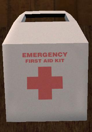 Unlike other health restoratives, Medkits cannot be collected into the player's inventory. Instead, they're used up on the spot, healing whatever injuries the player has.