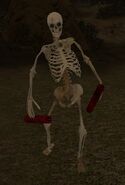 Unique enemies that appear during Halloween, they can spawn in any area around Paradise, and their appearance is signaled by a puff of flame erupting from the ground. The Skeletons will attack the Postal Dude and nearby bystanders. They can be killed by smashing their heads. Upon being killed, skeletons dissolve into liquid, similar to Zombies and Gary Coleman hallucinations.