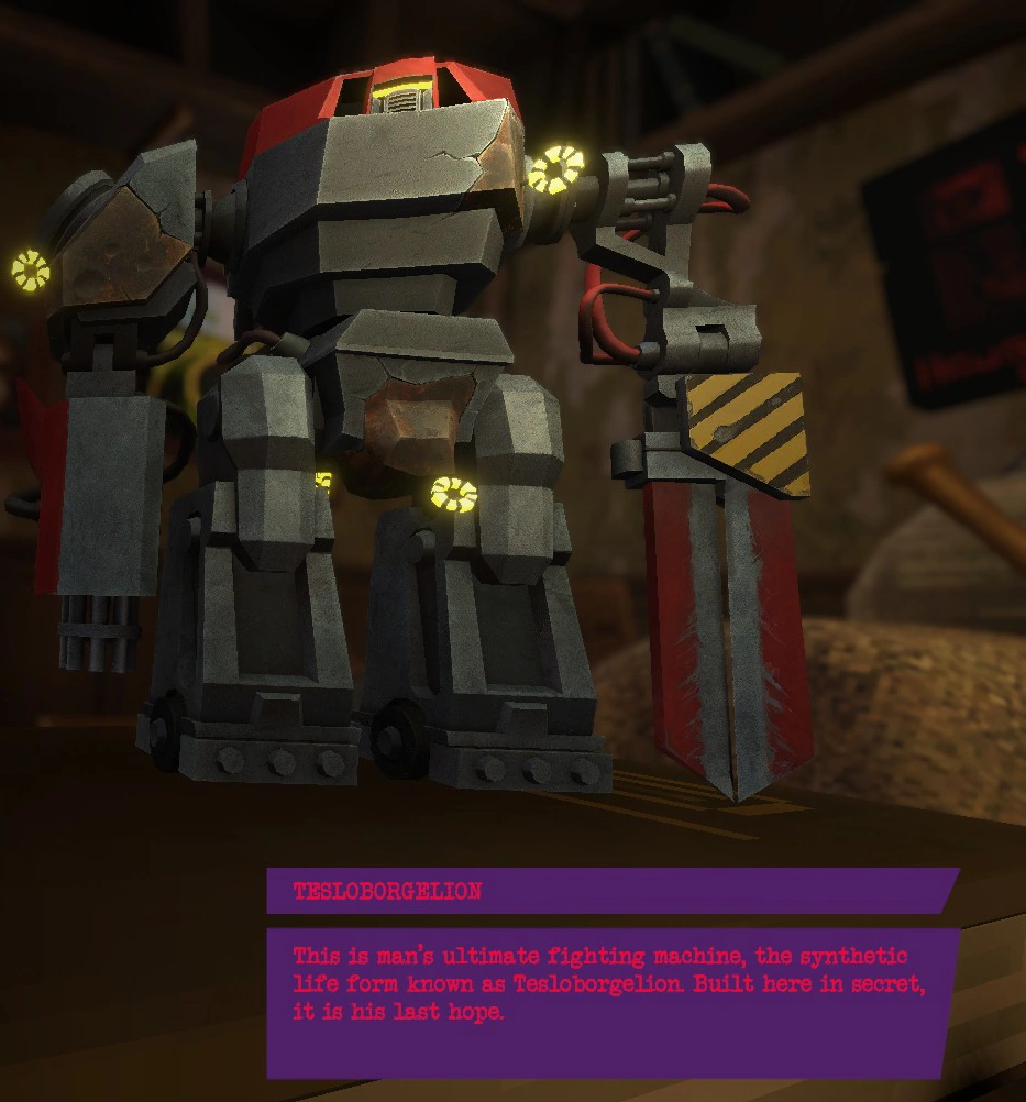 The Tesloborgelion is the second phase of the game's final boss fight/level in No Lives Matter. Multiple parts of its body can be pulled off using the Super Hooker Shotgun to reveal vulnerable areas of its body where it can be damaged.